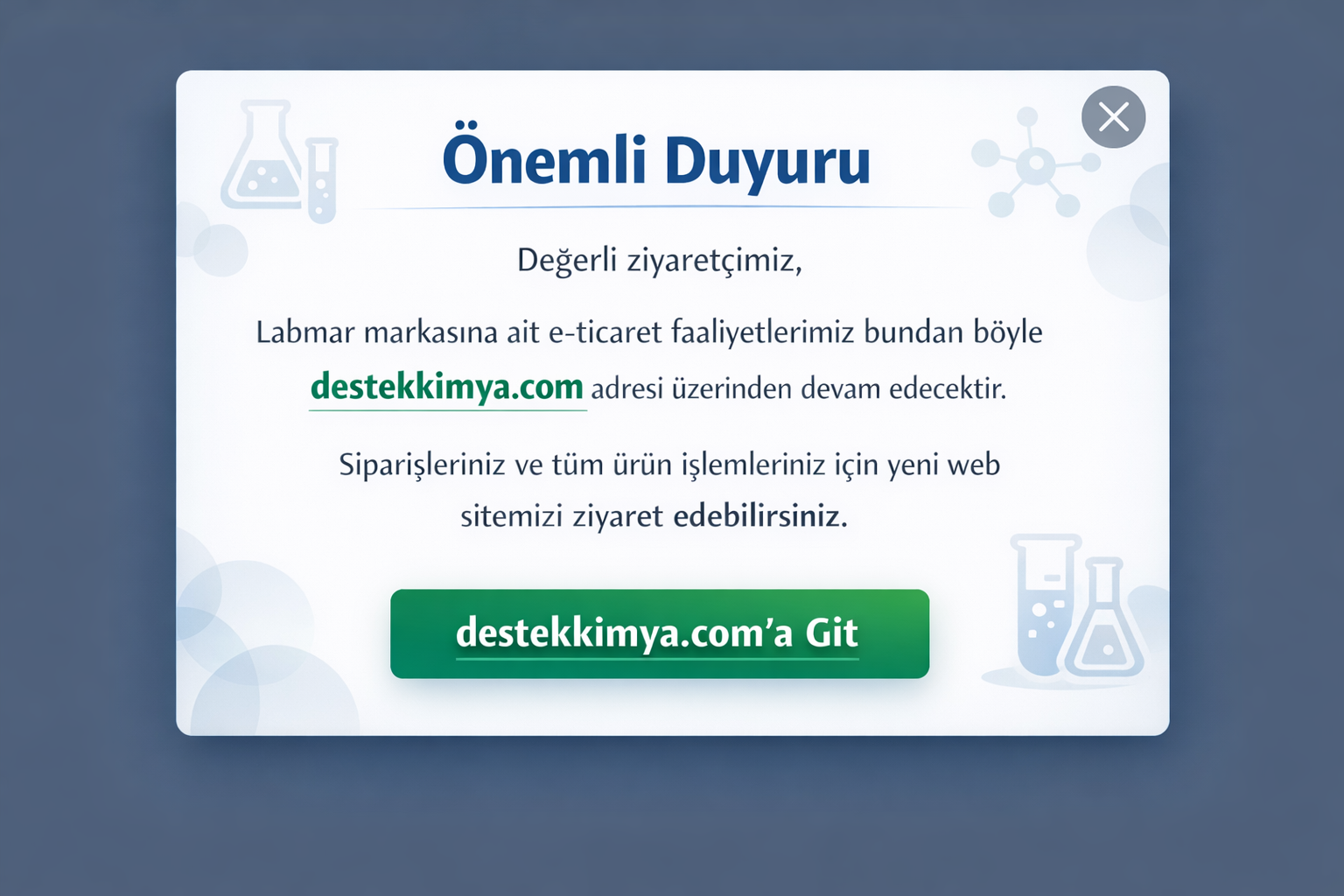 Satın almak istediğiniz ürünün satışı özel izne tabidir. Ürünün kişisel olarak satışı mümkün olmayıp, firma bilgilerinizi tarafımıza ıslak imzalı ve kaşeli olarak göndermeniz gerekmektedir. Labmar tarafından gerekli incelemeler yapılarak uygun görülmesi durumunda ürünleriniz tarafınıza gönderilecektir. Aşağıdaki bağlantıdan lütfen Son Kullanıcı Beyannamesini doldurarak tarafımıza iletin ve satın alma işleminizi tamamlayınız.